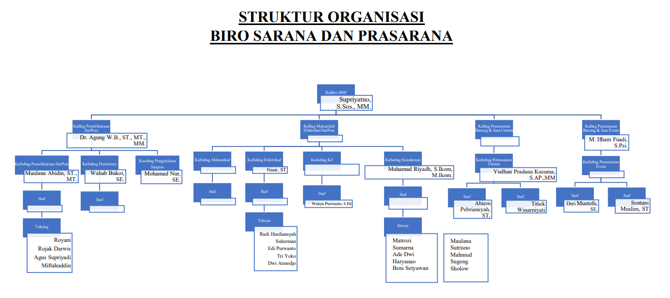 Biro Sarana dan Prasarana (BSP) Universitas Mercu Buana hadir sebagai penggerak utama dalam mewujudkan lingkungan kampus yang modern, nyaman, aman, dan berkelanjutan. BSP berkomitmen mendukung seluruh aktivitas akademik dan non-akademik melalui pengelolaan sarana dan prasarana yang inovatif, adaptif terhadap perkembangan teknologi, serta selaras dengan kebutuhan masa depan pendidikan tinggi.