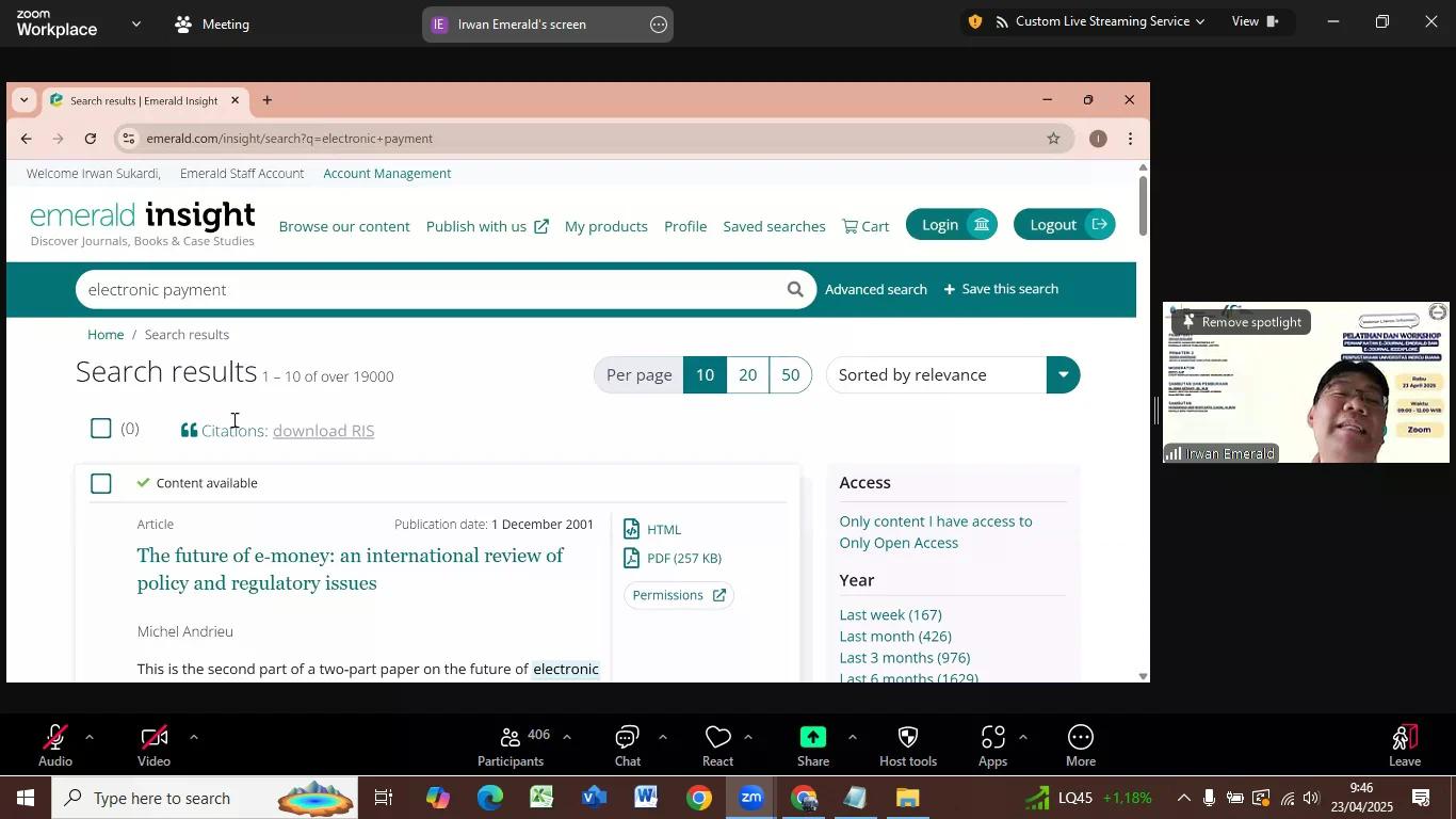 Pemateri pertama pada acara webinar kali ini yaitu Bapak Irwan Sukardi menjelaskan secara rinci mengenai cara mengakses dan mengunduh artikel-artikel ilmiah yang tersedia dalam e-journal Emerald. Beliau menekankan pentingnya pemahaman mahasiswa, dosen, dan peneliti terhadap fasilitas yang disediakan oleh perpustakaan UMB, khususnya dalam mendukung kegiatan akademik dan penelitian. Tidak hanya menyampaikan materi inti, Bapak Irwan Sukardi juga meluangkan waktu untuk menjawab sejumlah pertanyaan dari para peserta. Beberapa pertanyaan yang banyak diajukan antara lain mengenai cara mengakses e-journal Emerald dari luar kampus, langkah-langkah efektif dalam menelusuri dan menemukan koleksi artikel yang dibutuhkan, hingga prosedur dan tips dalam mempublikasikan artikel di jurnal yang tergabung dalam e-journal Emerald.