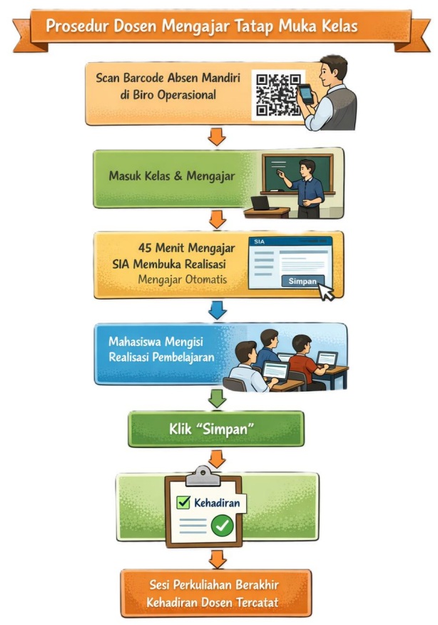Barcode kedatangan sebagai syarat untuk memulai sesi perkuliahan tatap muka kelas, buka realisasi perkuliahan dan membuka presensi kehadiran mahasiswa.